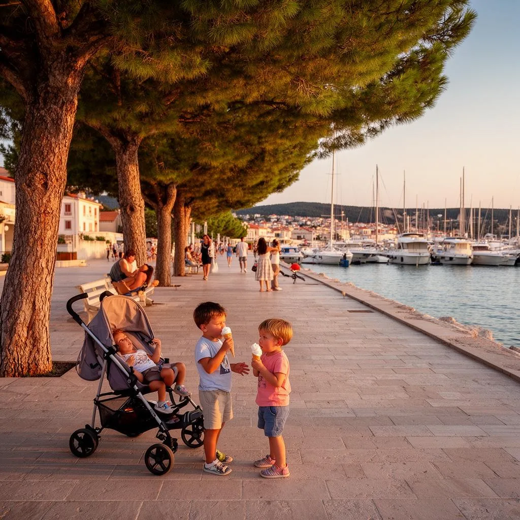 Zwiedzanie z dziećmi działa, jeśli jest krótkie i ma „cel” (lody, plac, punkt widokowy, karmienie rybek w porcie). Wtedy nawet zatłoczone starówki są do przejścia.