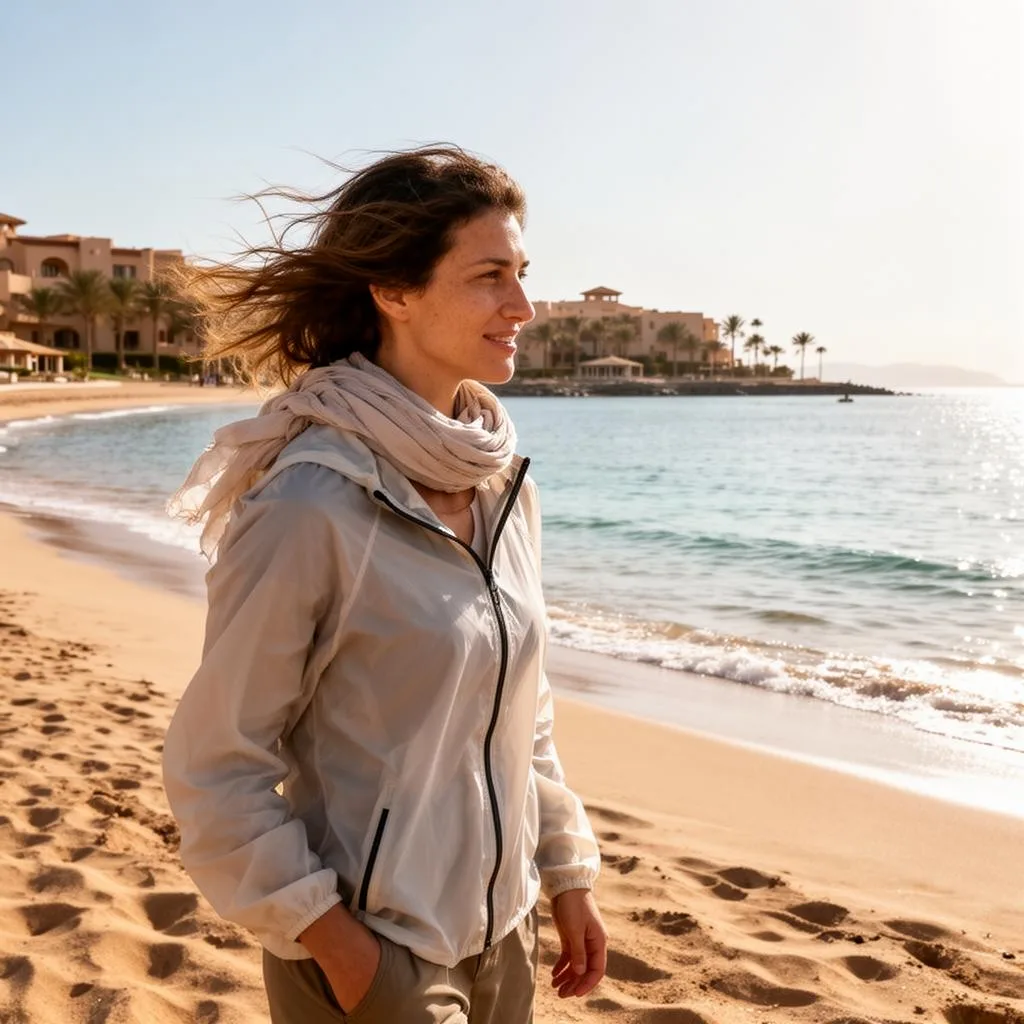 W wielu rejonach nad Morzem Czerwonym wiatr bywa stałym „towarzyszem” – czasem przyjemnym, czasem męczącym. Do tego dochodzi klimatyzacja w hotelu (często ustawiana mocno). Co warto mieć, żeby nie chodzić w kółko po sklepikach „na szybko”: