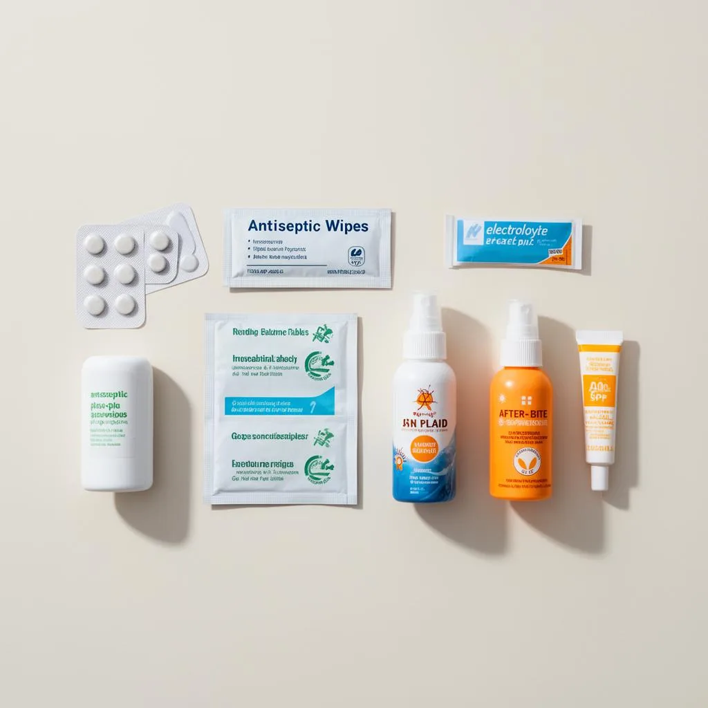 Najlepiej myśleć o apteczce jak o zestawie modułowym: „żołądek”, „skóra i słońce”, „alergia”, „rany” oraz „ukąszenia i parzenia”. To, co zwykle ma największy sens (w małych opakowaniach i bez przesady):